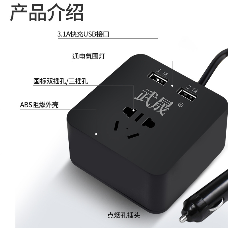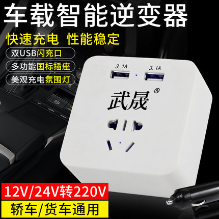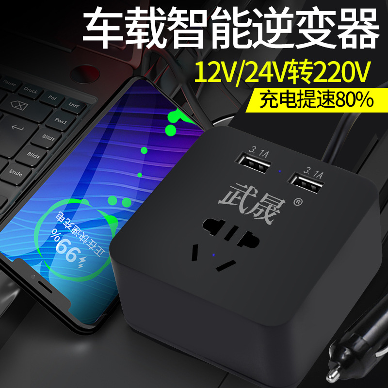 车载逆变器12v24v通用转220v家用汽车充电器插座一体机电源转换器