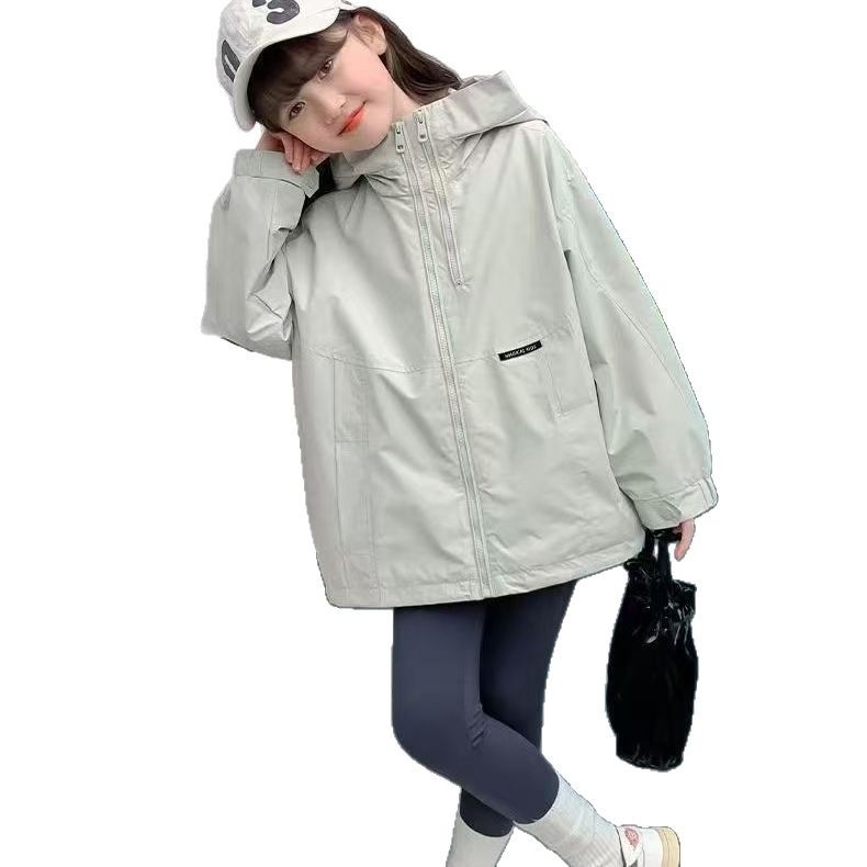 女童外套春秋款2025新款洋气儿童时髦连帽冲锋衣中大童休闲上衣