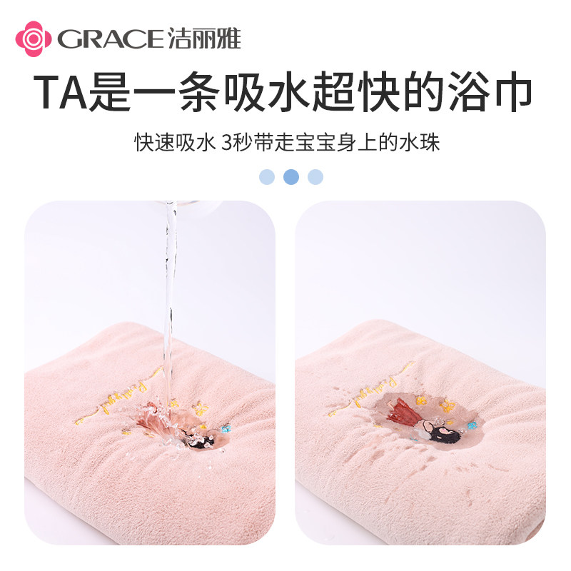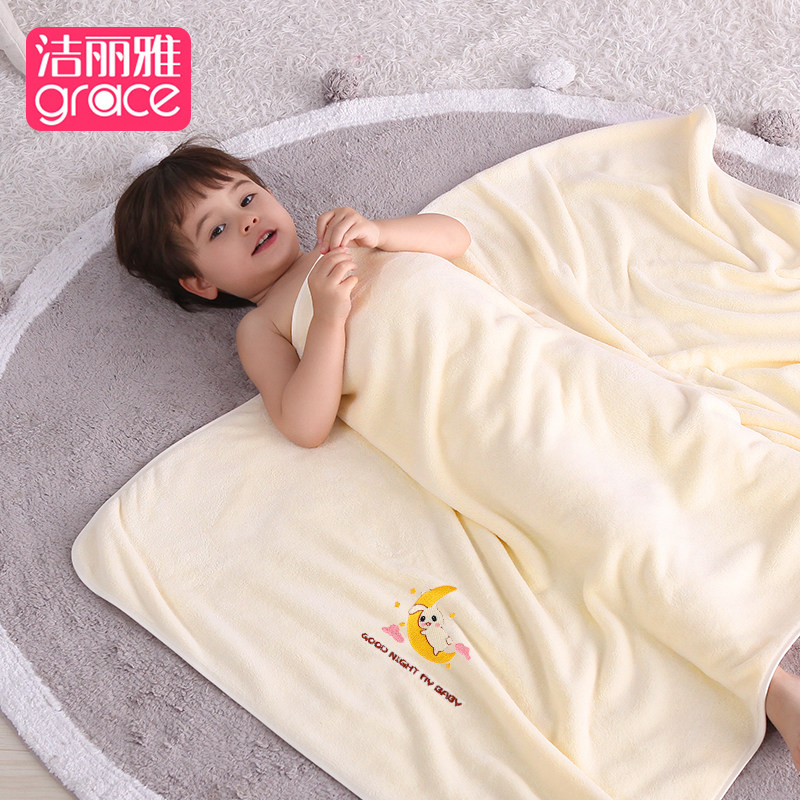 洁丽雅儿童浴巾比纱布纯棉吸水宝宝洗澡秋冬婴儿新生儿童超柔盖毯