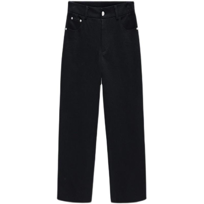 黑色窄版直筒牛仔裤女秋冬加绒大码胖mm显瘦梨形身材小个子九分裤