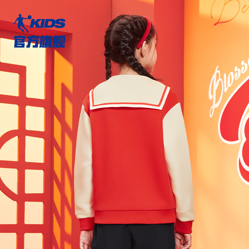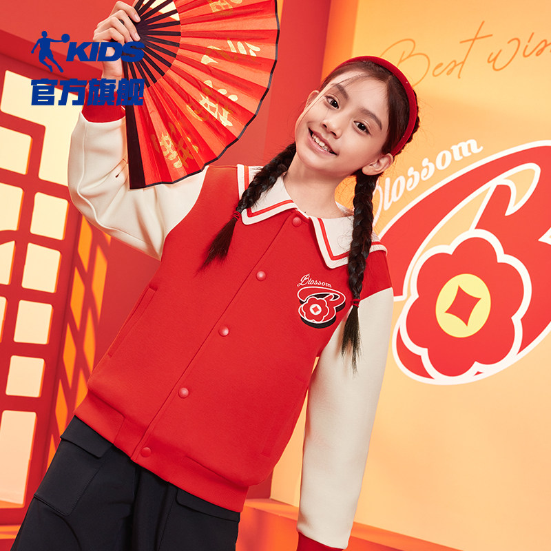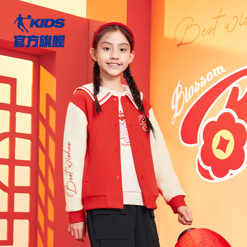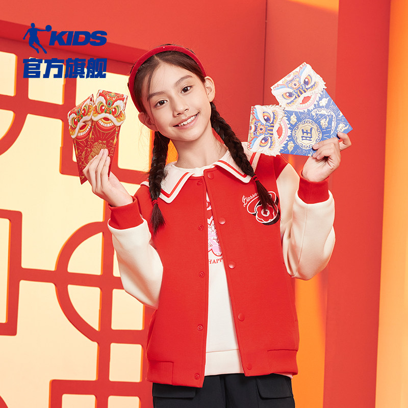乔丹童装女童新年外套2025年春季新款大童红色开衫蛇年本命年衣服