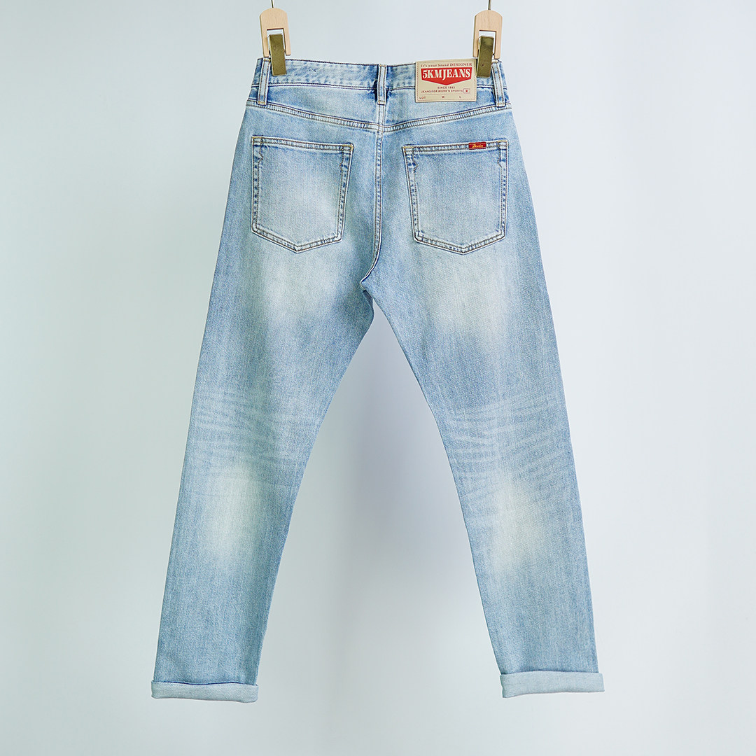8002-10盎司赤耳丹宁男士牛仔裤子修身直筒时尚百搭夏季薄款9分裤