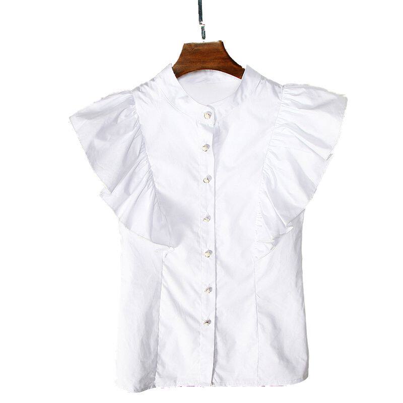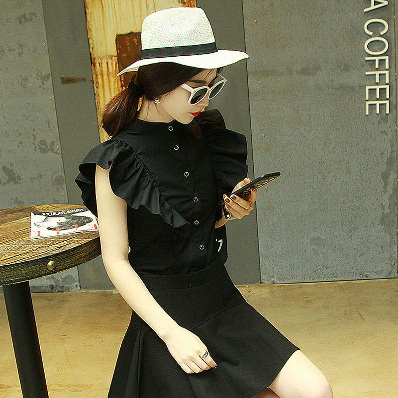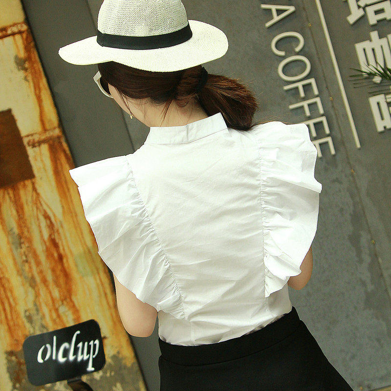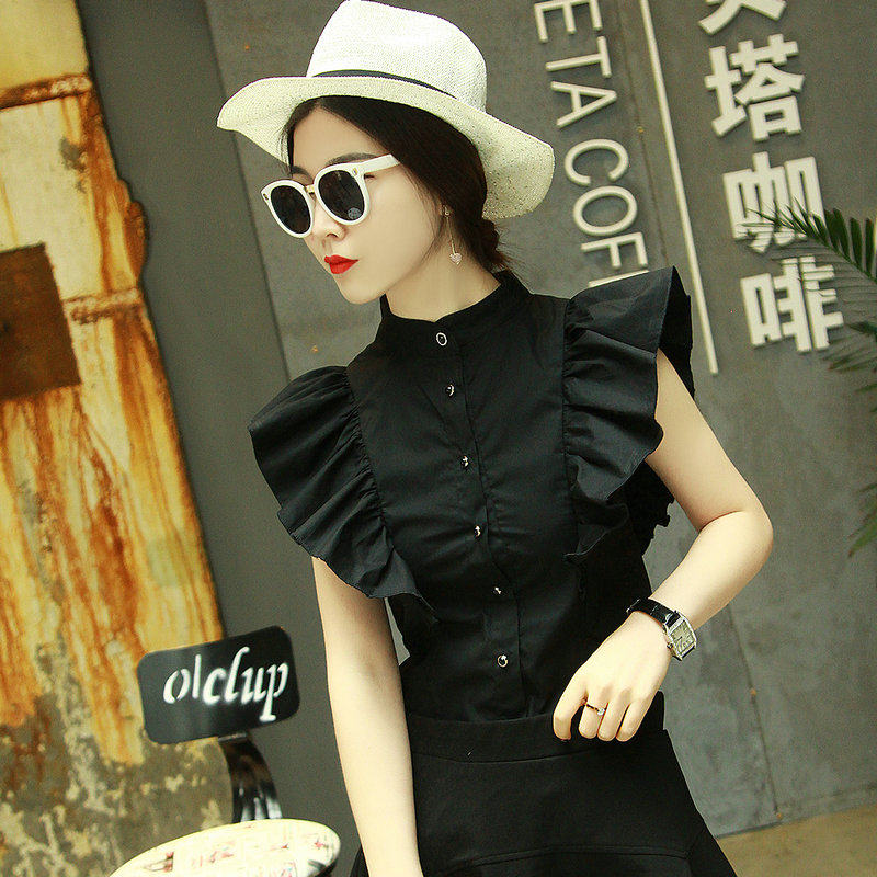 2022夏装新款衬衫 女百搭飞飞袖时尚木耳边简约气质显瘦无袖上衣