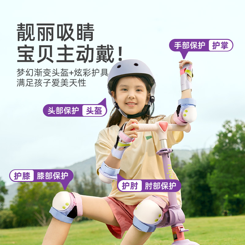 mideer弥鹿儿童护具轮滑骑行头盔男女款平衡车自行车滑板溜冰护膝