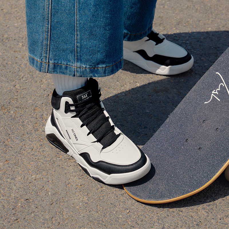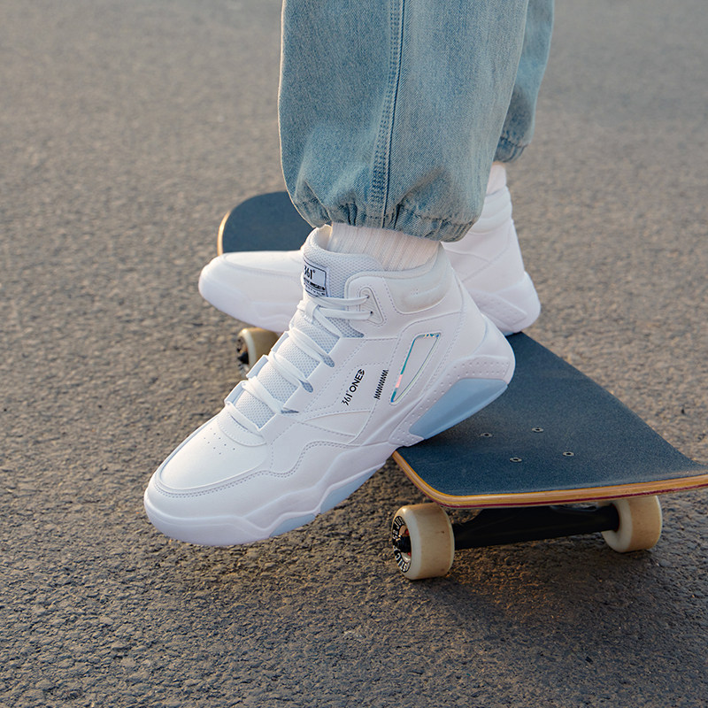 361高帮板鞋男秋季新款运动鞋男皮面防水男鞋厚底增高休闲小白鞋