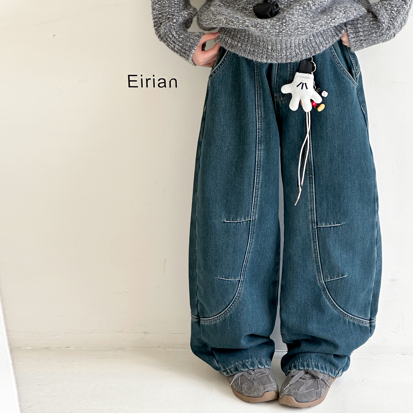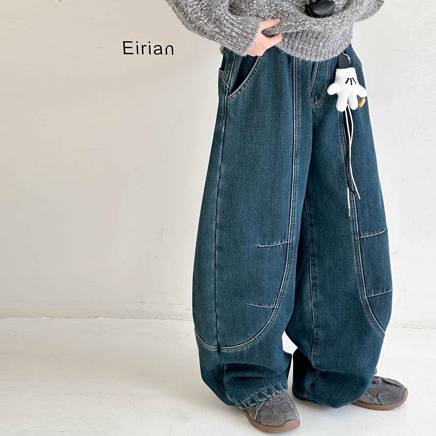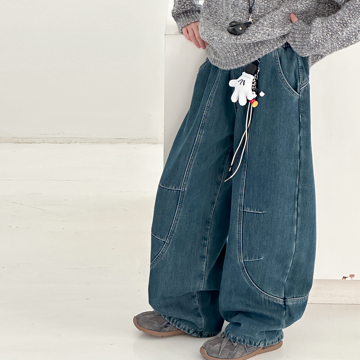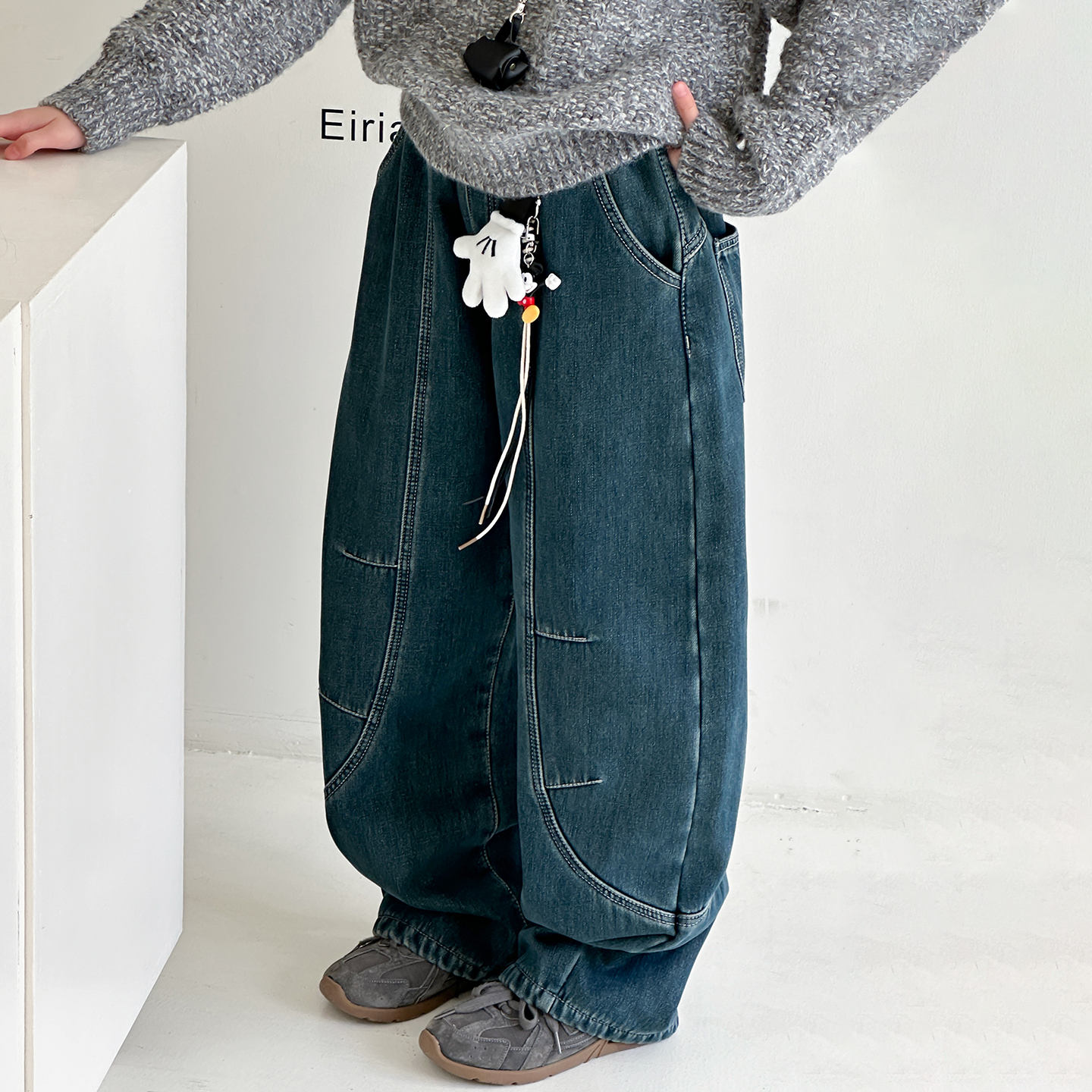 阔腿裤拼接牛仔裤加绒韩版弯刀裤