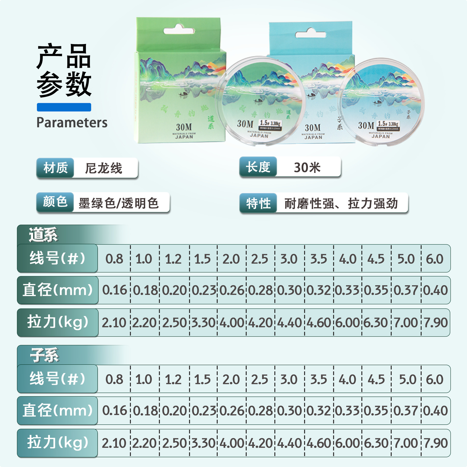 30米道系子系尼龙线钓鱼线海竿线主线子线10线强拉力线