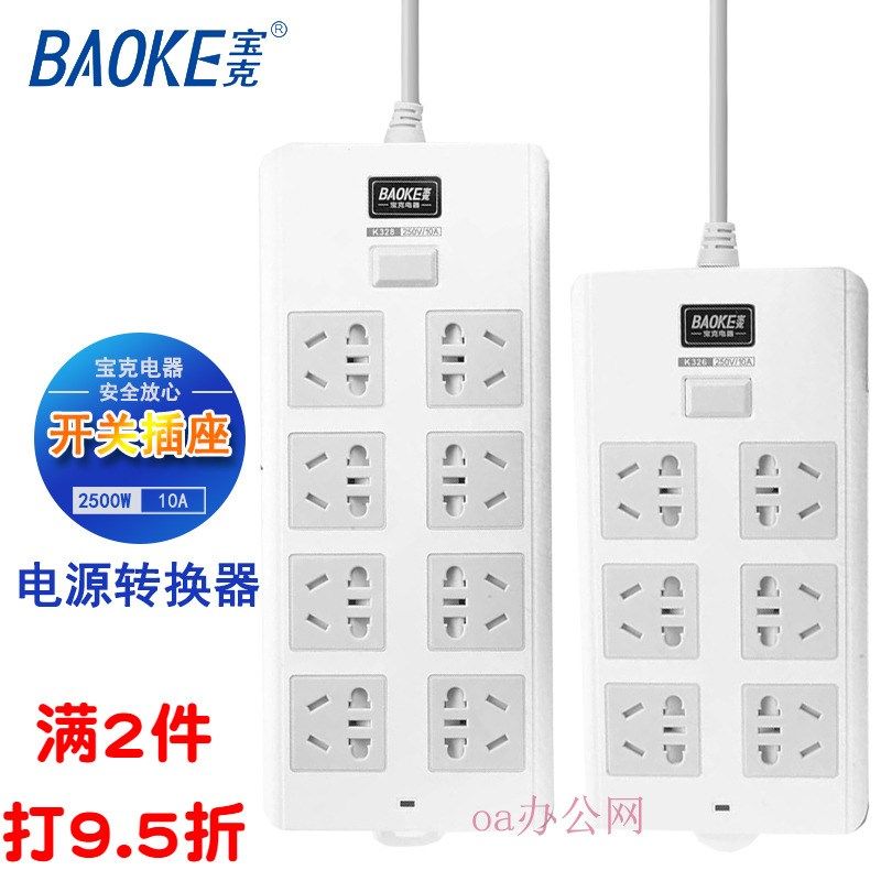 宝克总开关双排插座1.8m3/5/10米6孔8位多孔接线拖线板电源转换器