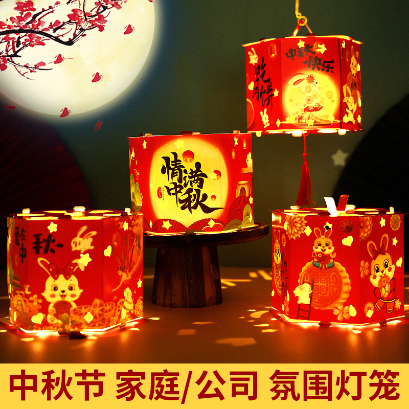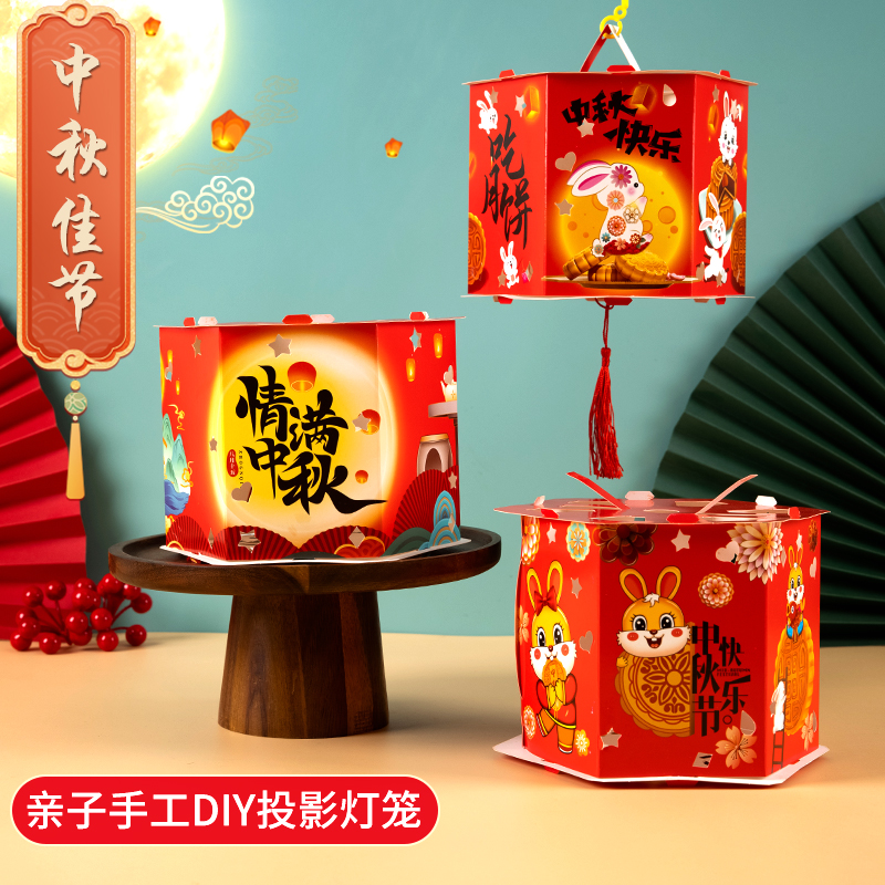 中秋节灯笼2025手提发光儿童手工新款diy材料包投影走马花灯古风
