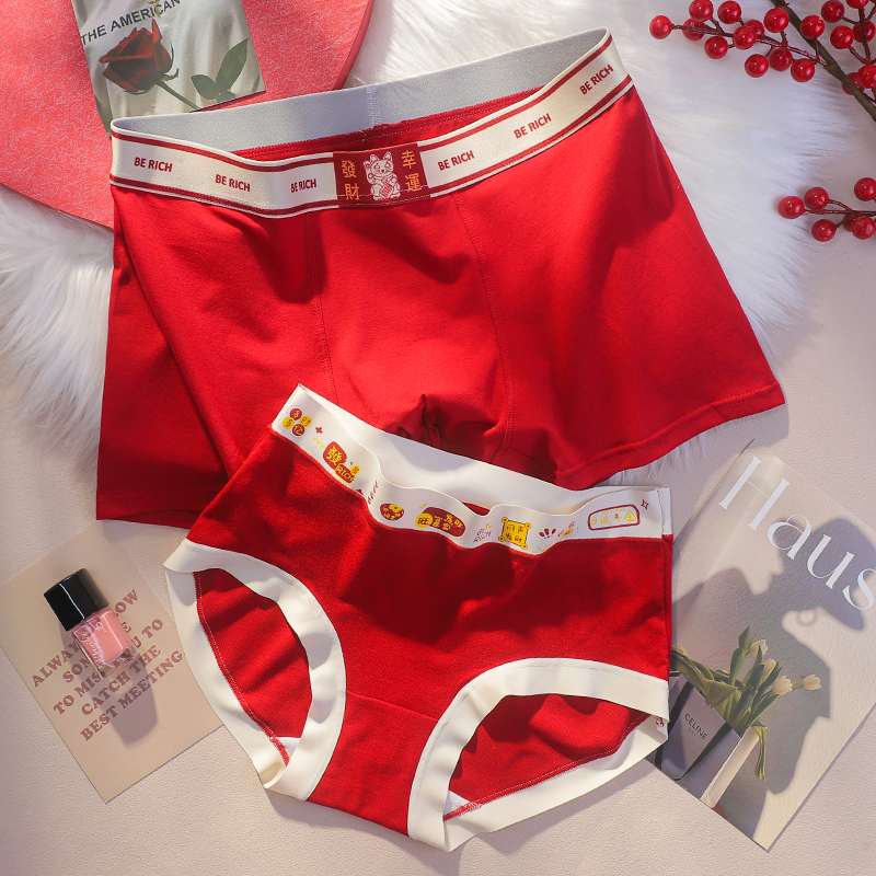 甜米家的情侣内裤红色结婚本命年一男一女纯棉性感内衣蛇年套装