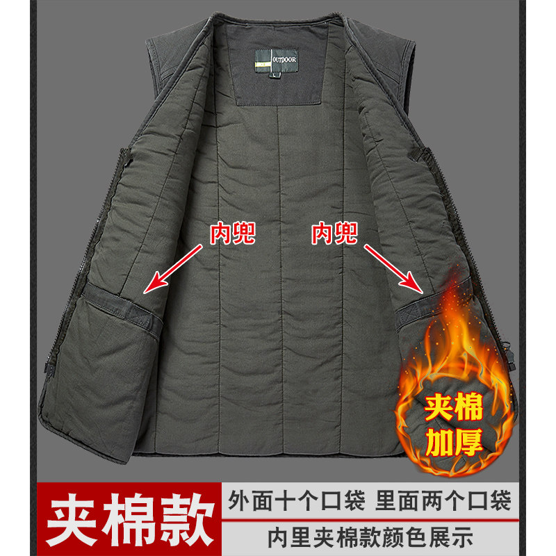 加棉加厚马甲中老年纯棉保暖背心男士坎肩多口袋冬季爸爸工装马夹