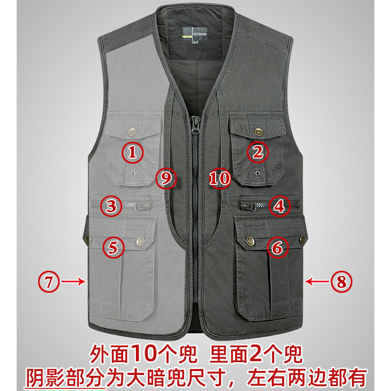 纯棉多口袋加棉加厚保暖马甲