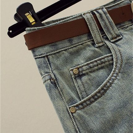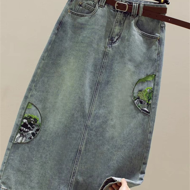 蓝色新中式牛仔半身裙女夏2024新款国风开叉A字裙高腰包臀中长裙