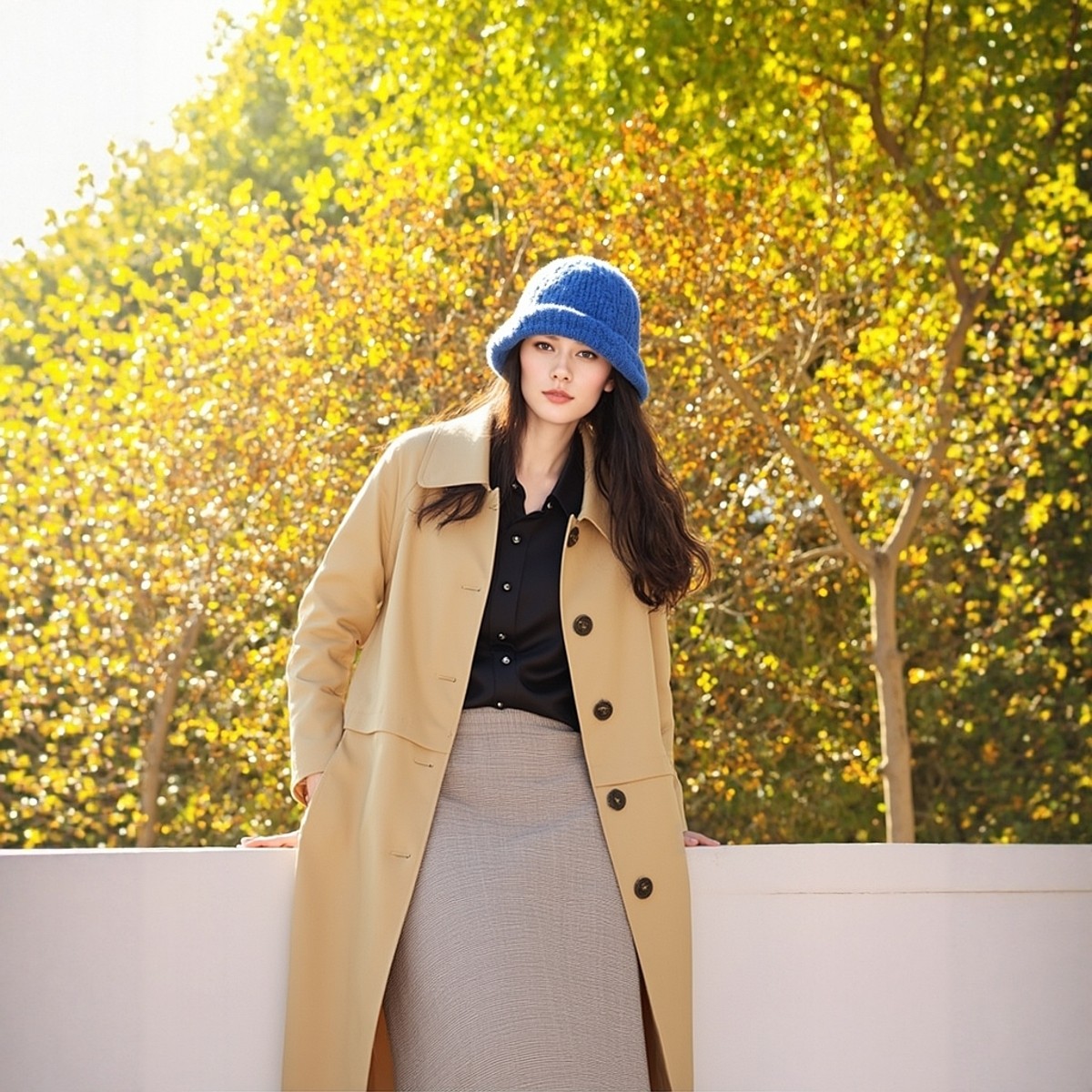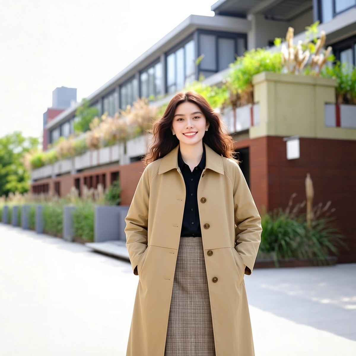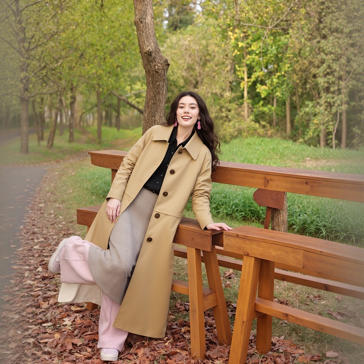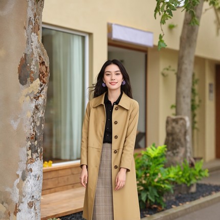 万丽(服饰)女士翻领休闲风衣中长款女装舒适长袖外套复古女款