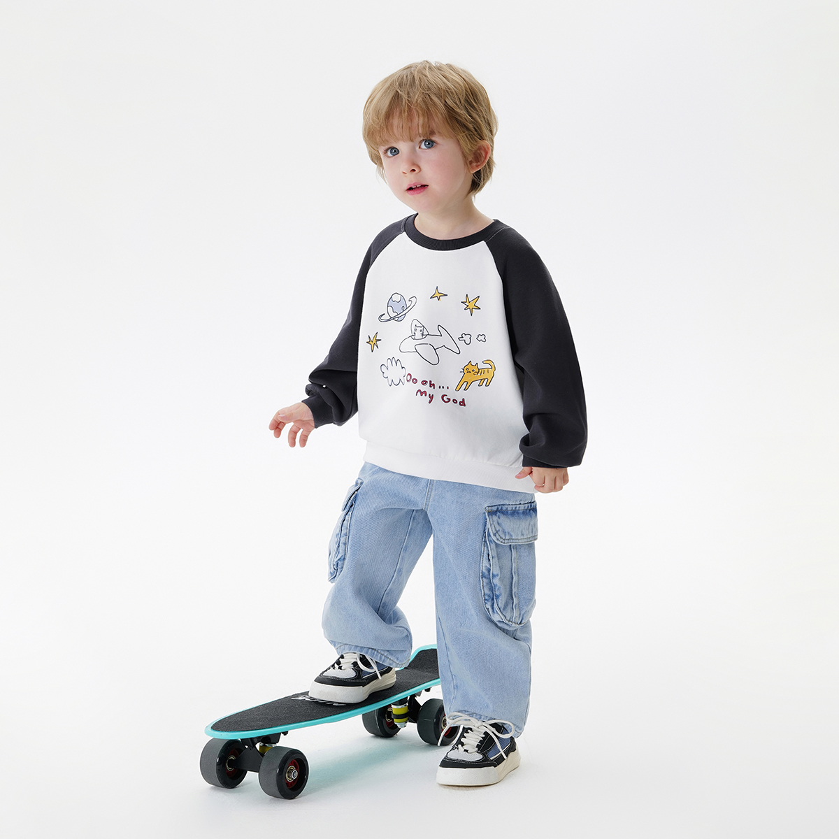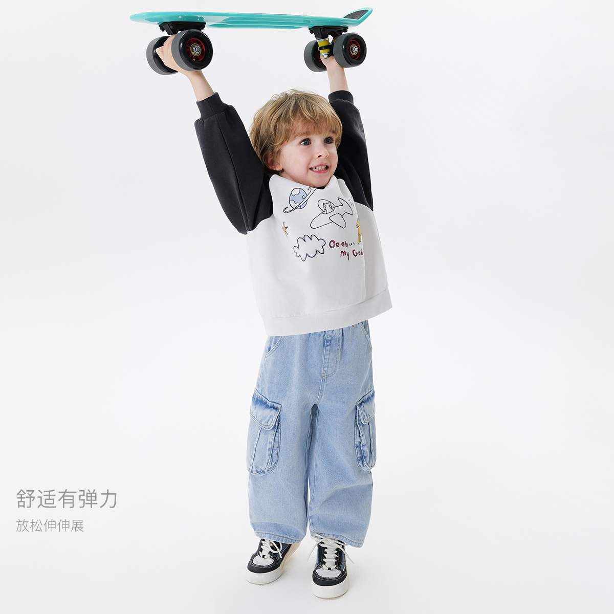 马克珍妮男童涂鸦撞色卫衣儿童宽松上衣2025年宝宝春装新款250032