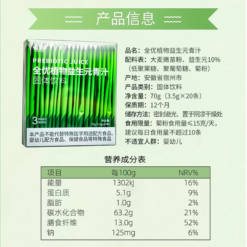 雀蜂全优益生元青汁高膳食纤维