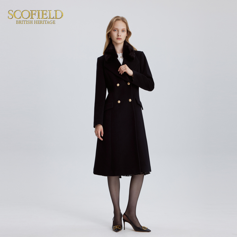 【绵羊毛+山羊绒】Scofield女英伦风水貂毛领毛呢大衣冬