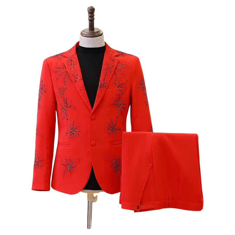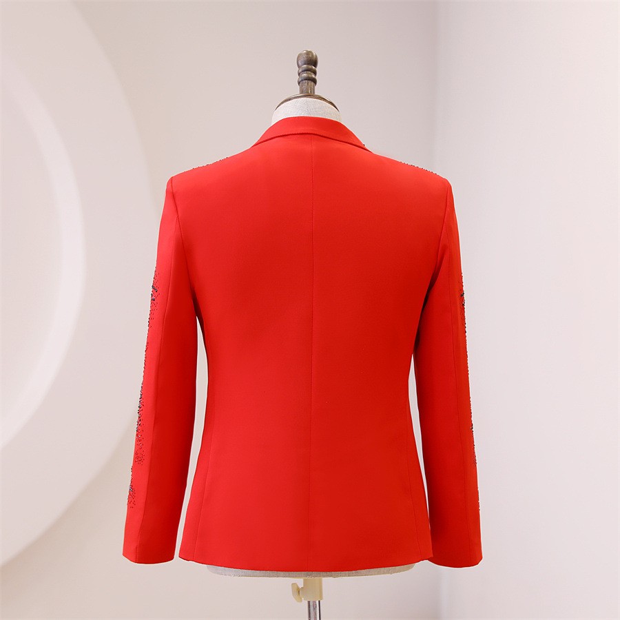 蔡徐坤同款2021演唱会红色西装套装 男歌手DS主持人摄影舞台礼服