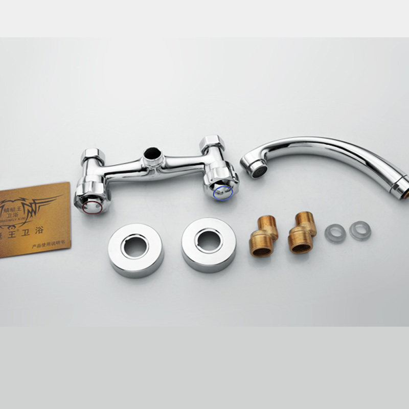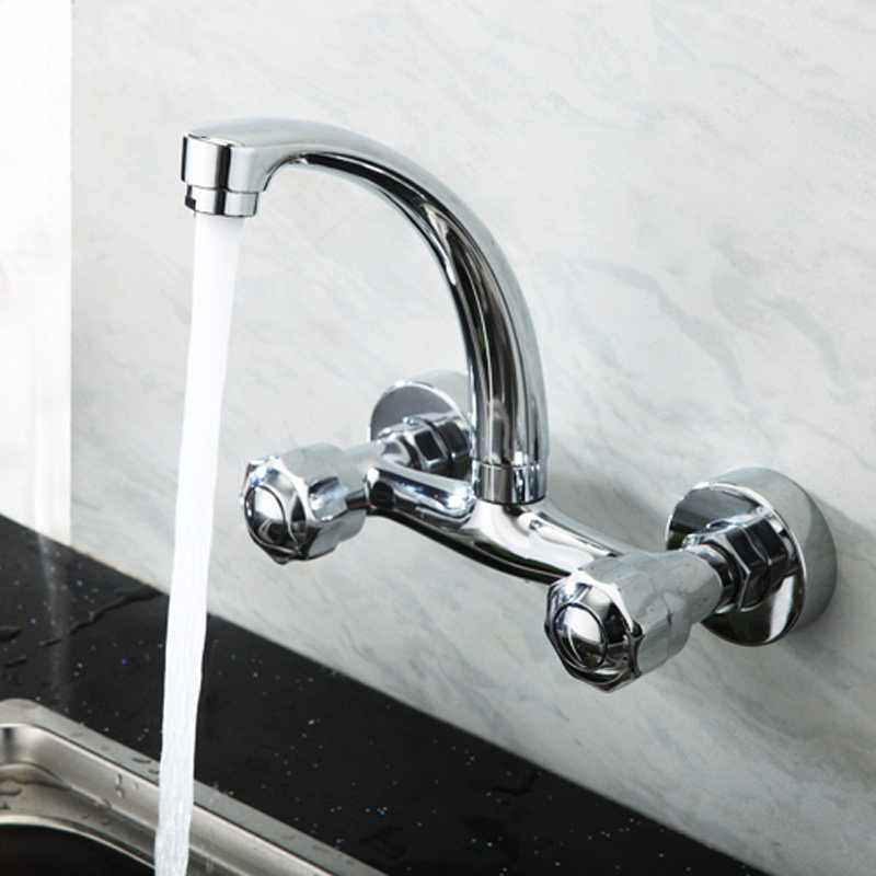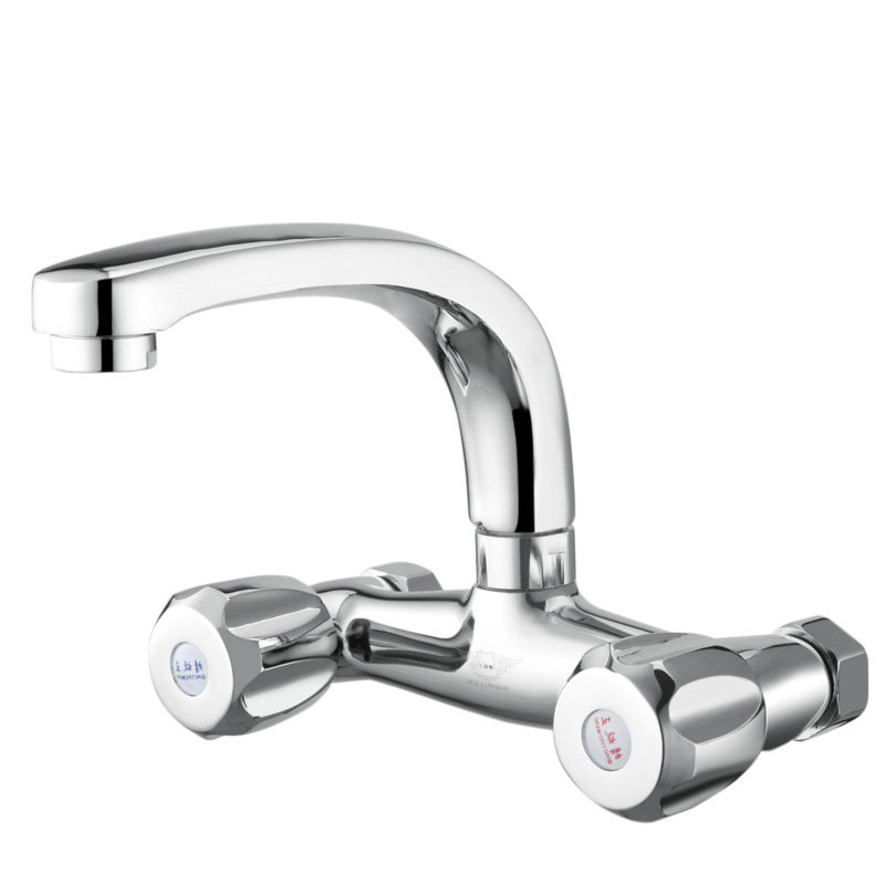 全铜入墙式厨房水龙头菜盆洗衣池双开冷热水304不锈钢万向混水阀