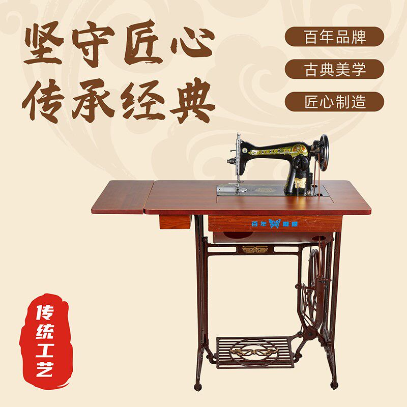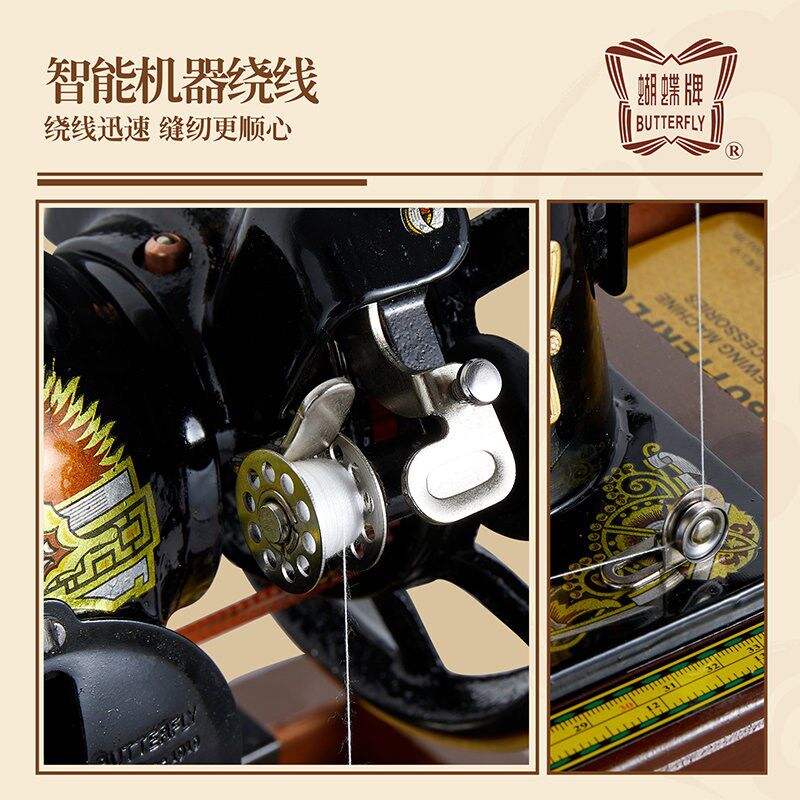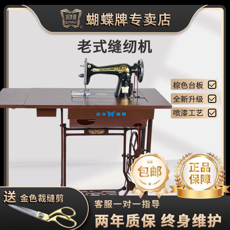 上海蝴蝶老式g缝纫机家用小型吃厚台式手提台板脚踏机架飞人