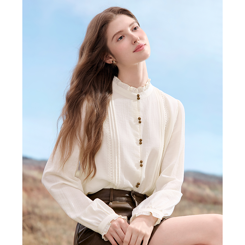 betu百图法式木耳边长袖衬衫女2025年秋季新款宽松显瘦气质衬衣