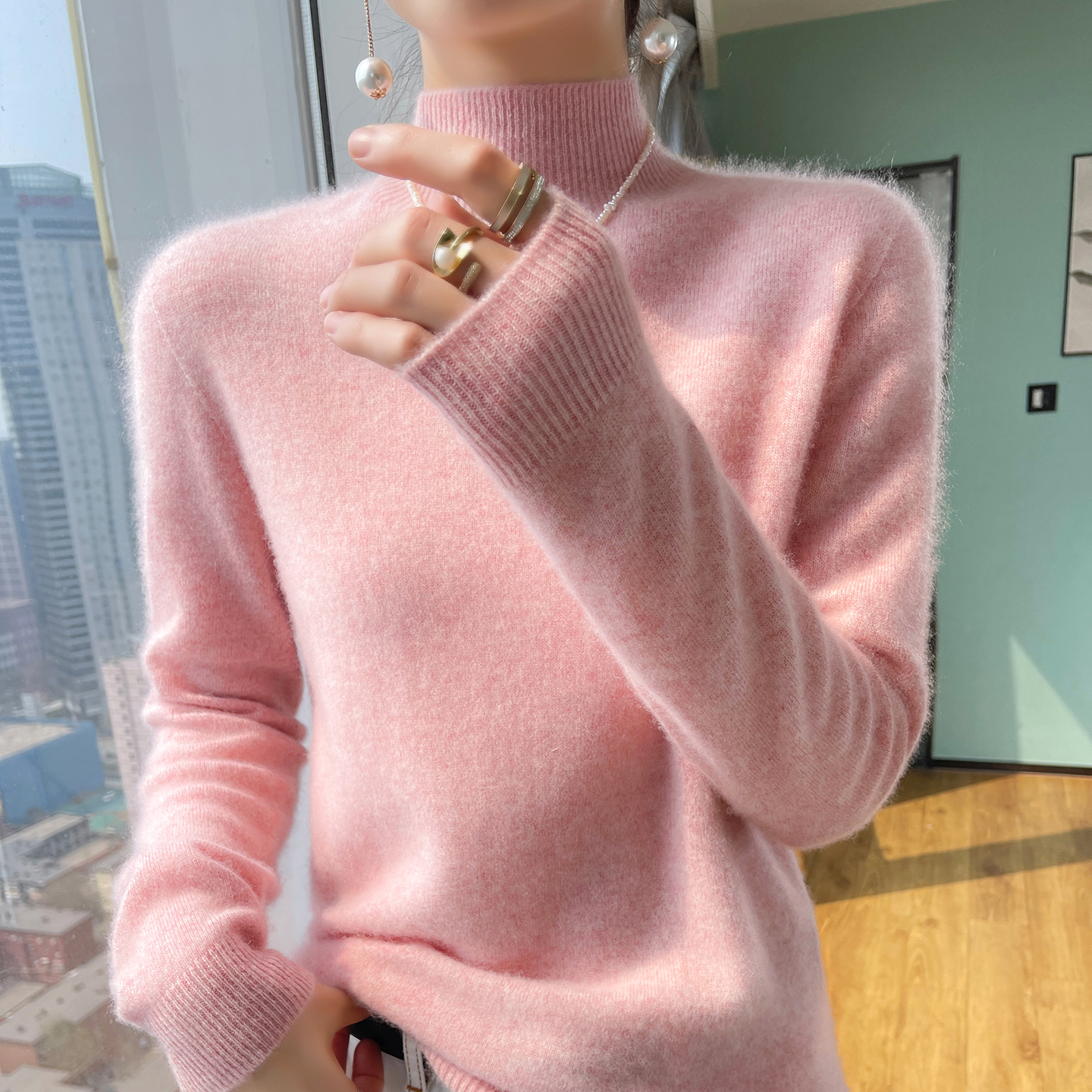 25冬季新款山羊绒衫女半高领一线成衣针织打底衫亲肤无缝羊毛毛衣