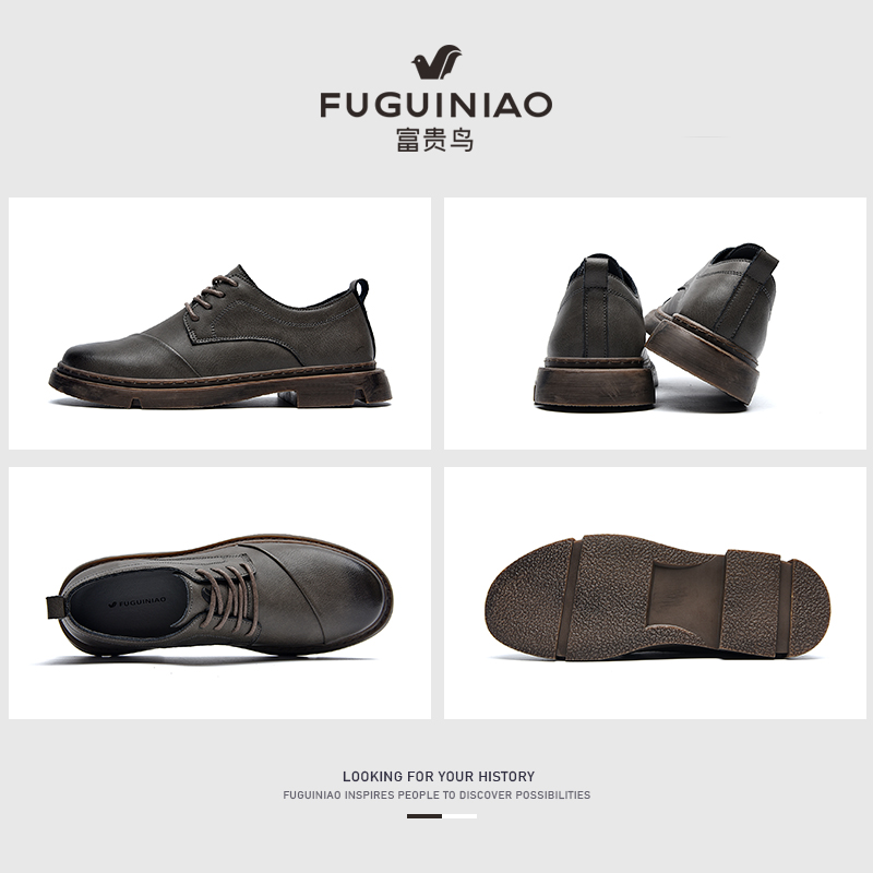 富贵鸟男士休闲皮鞋男款真皮男鞋秋季商务马丁鞋子英伦潮流工装鞋