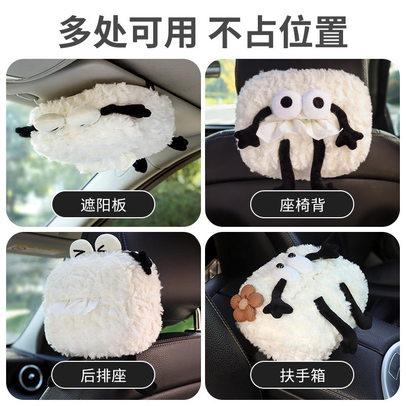 车载纸巾盒创意卡通可爱扶手箱椅背挂式抽纸盒车内装饰品摆件女士