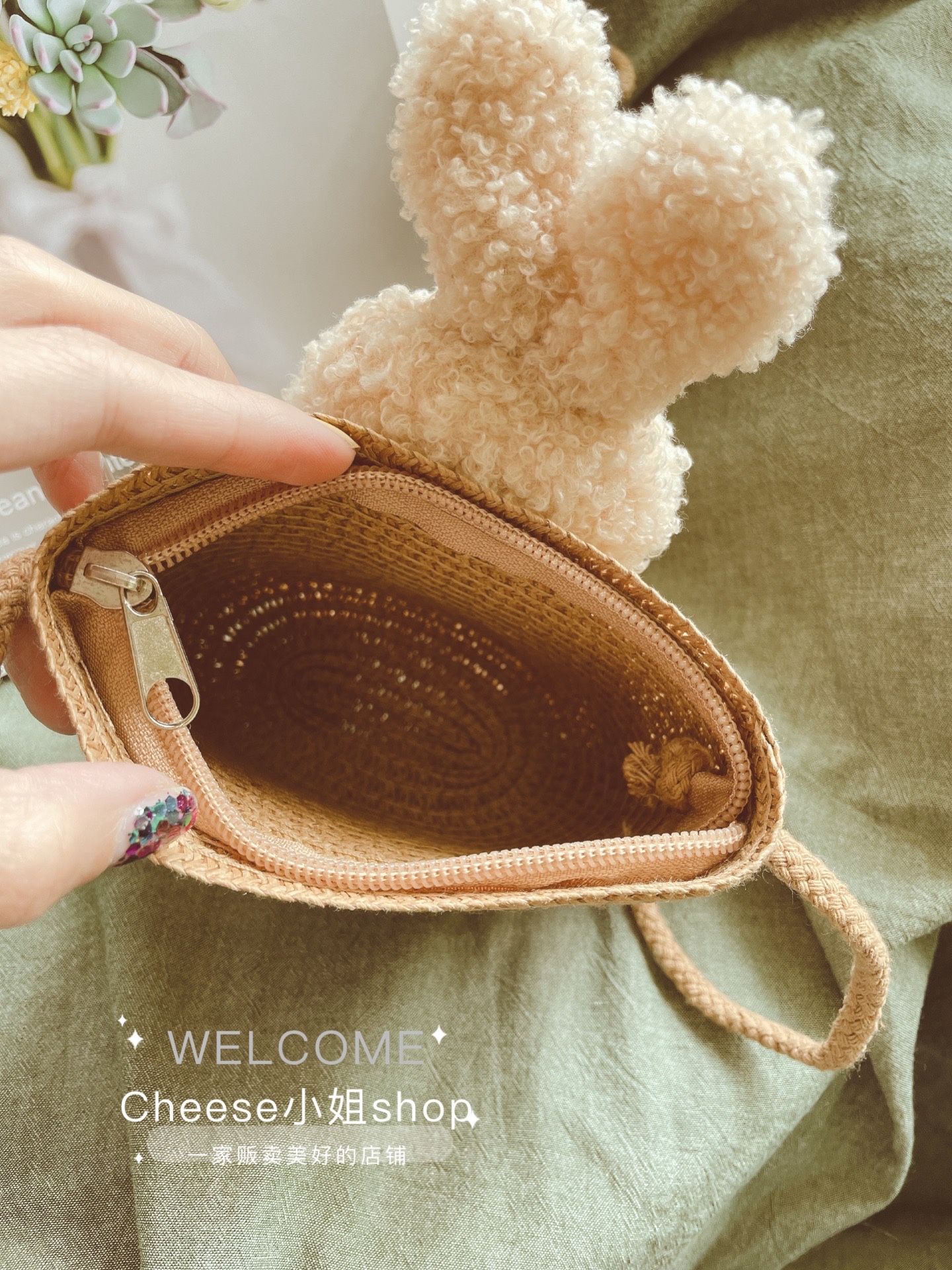 儿童包包女童成人可爱卡通毛绒小兔子斜挎包小女孩草编包宝宝小包