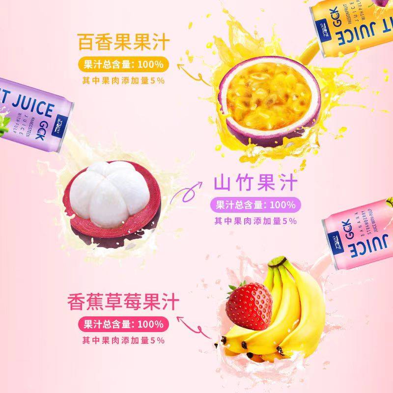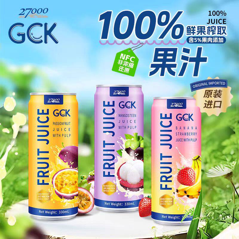 27000GCK进口果肉果汁饮料山竹百香果香蕉草莓NFC纯果汁0脂大果粒