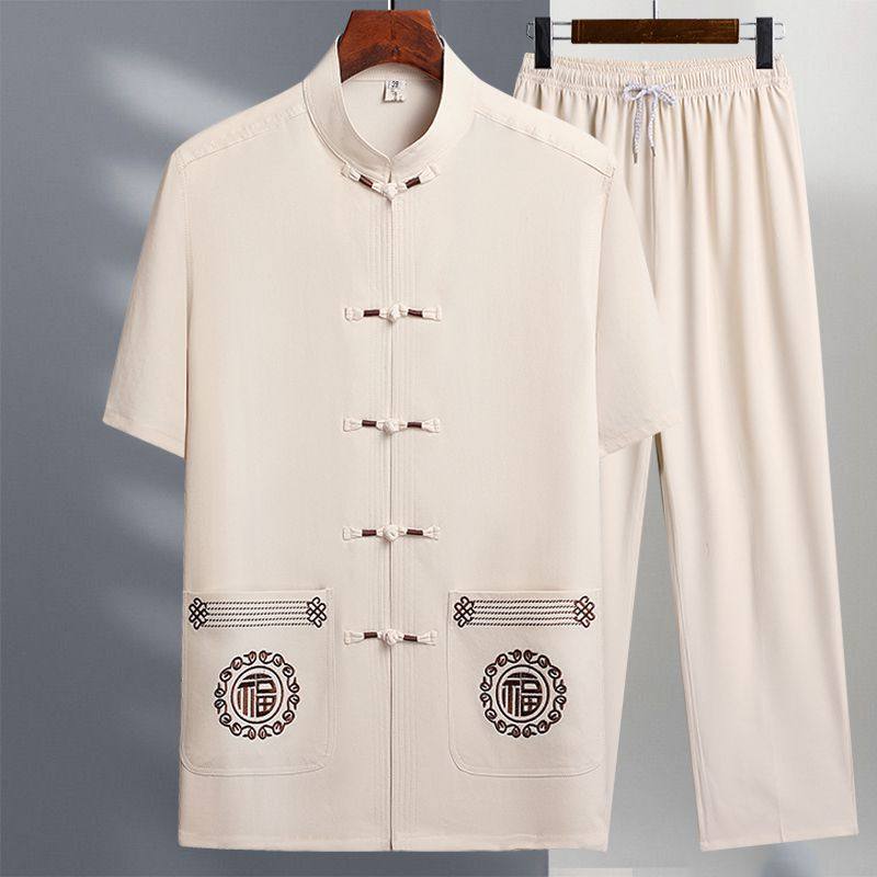 唐装男中老年爸爸装冰丝短袖套装中国风爷爷夏季两件套老年人衣服