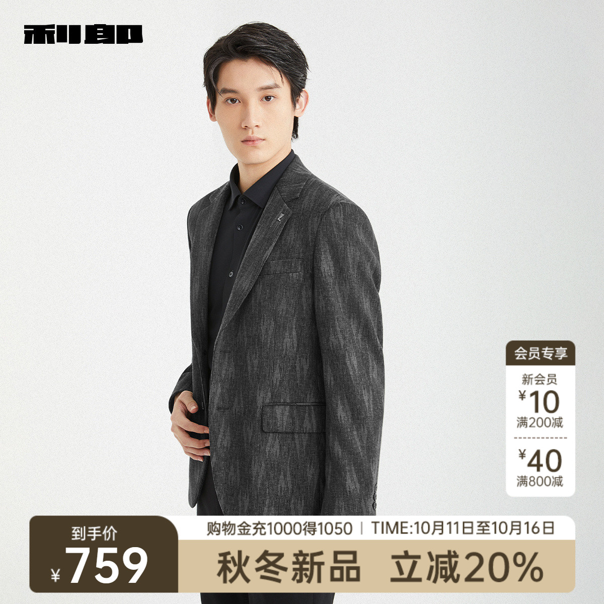 利郎官方含绵羊毛夹薄棉毛呢大衣
