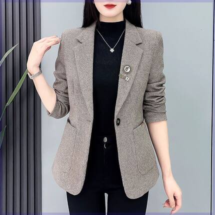 小香风一粒扣2024春季新款韩版时尚格子气质女士西装外套上衣显瘦
