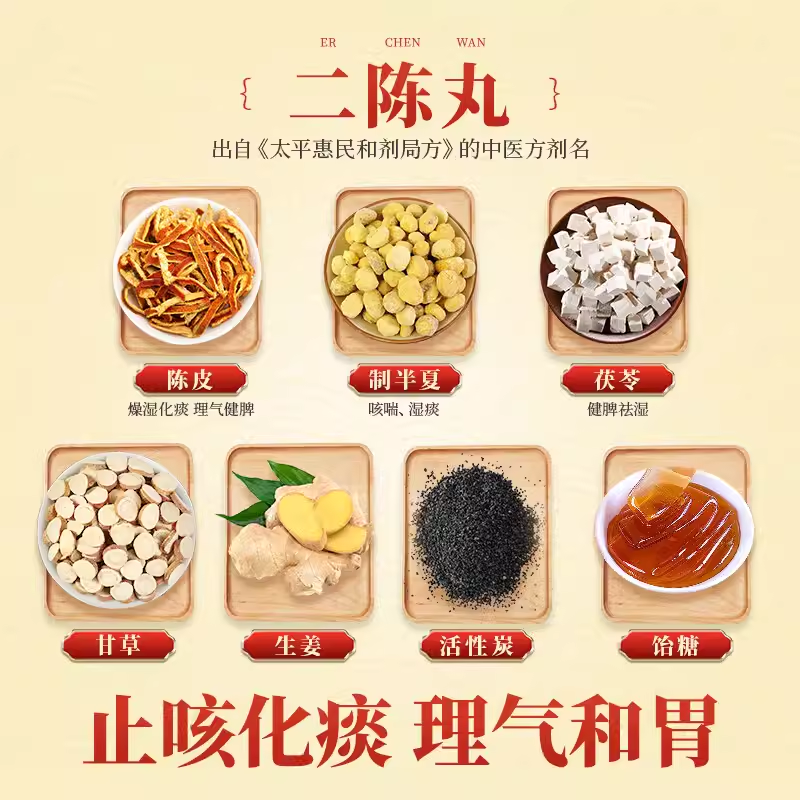 二陈丸健脾化痰痰湿中成药燥湿化痰调理脾胃痰湿热舌苔齿痕白厚黄