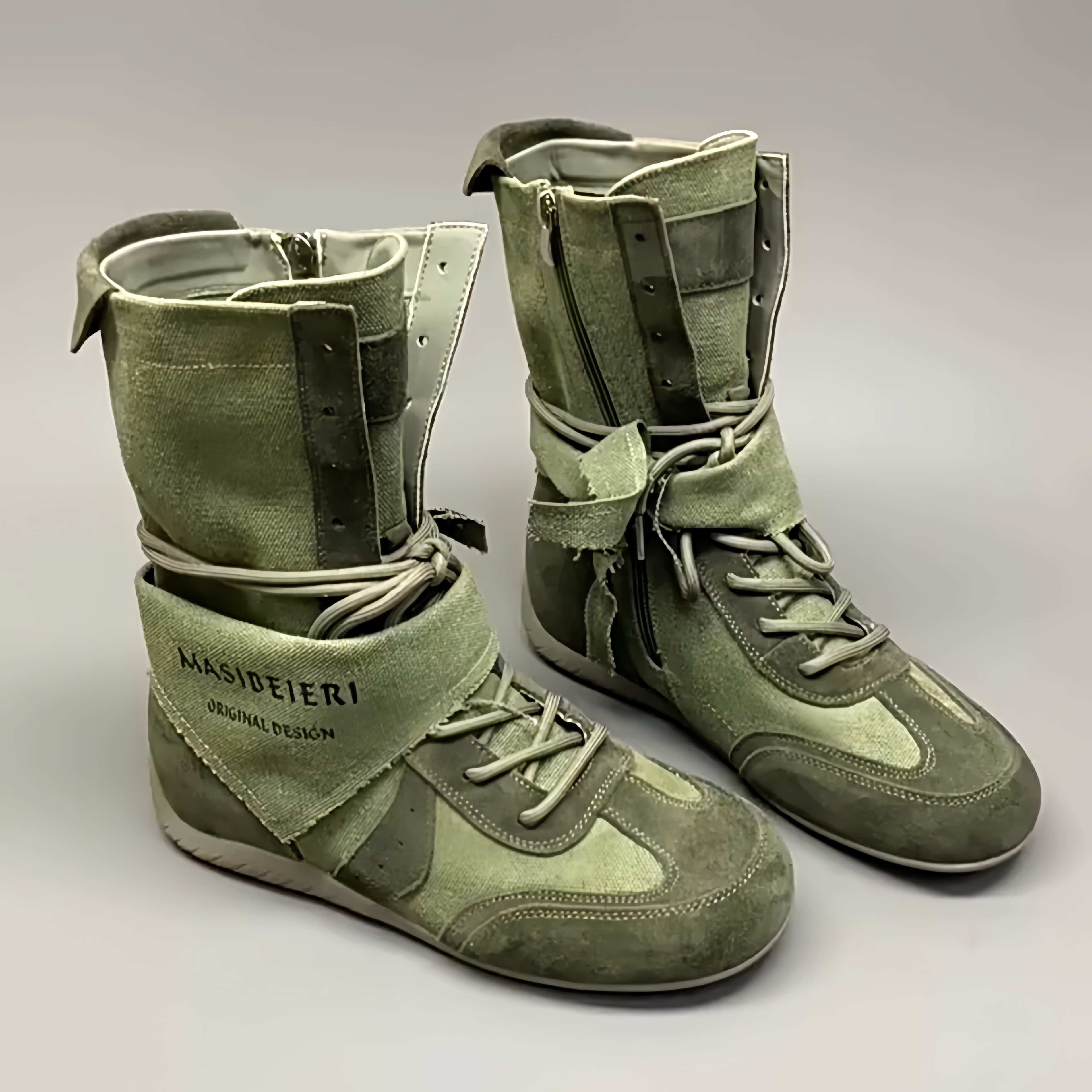 2025新款潮流磨砂皮帆布透气废土风平底中筒马丁靴女系带工装靴子