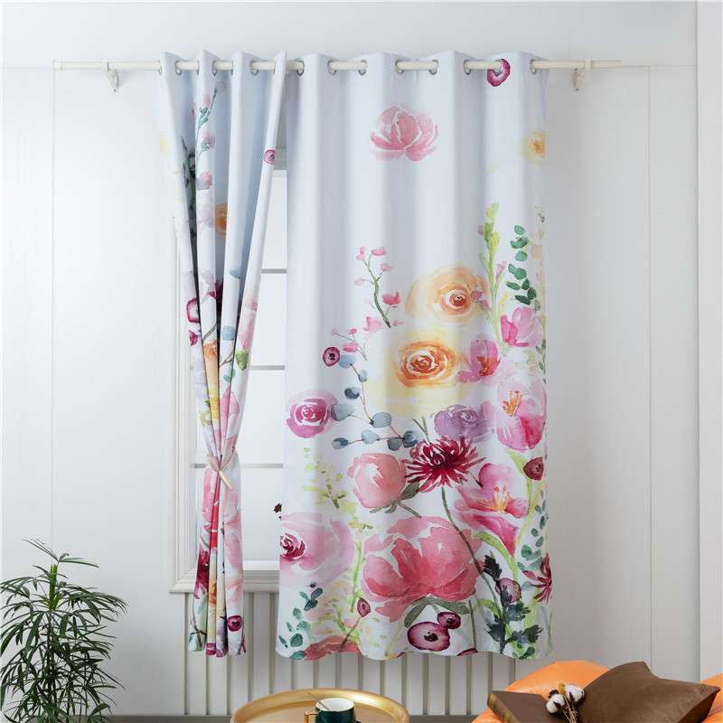 新款印花窗帘浮雕窗帘布卧室客厅遮光窗帘布山水画雪纺半遮光窗帘