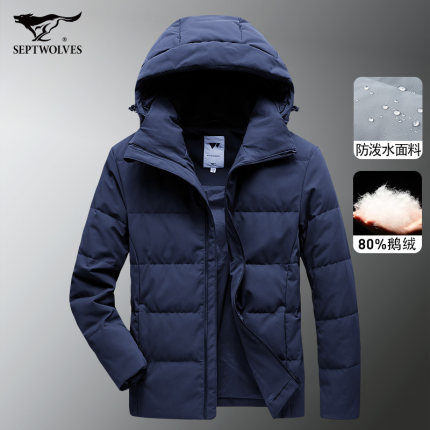 七匹狼男士羽绒服狼族部落连帽短款鹅绒冬季加厚保暖立领男装外套