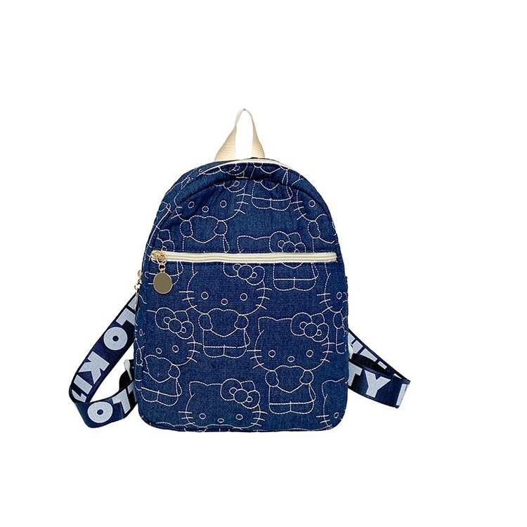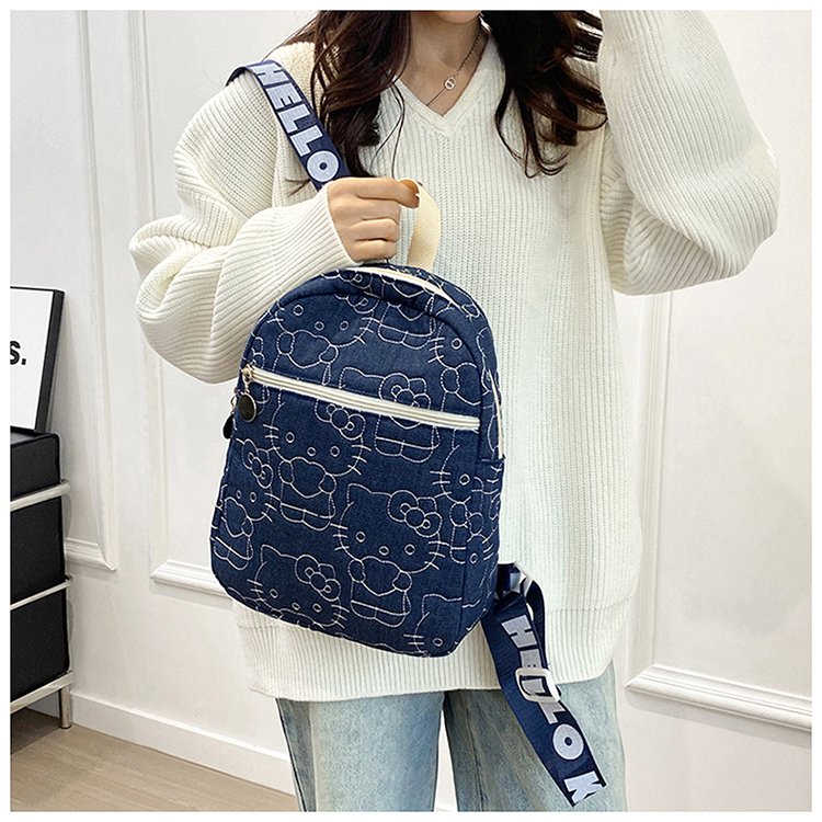 刺绣凯蒂猫牛仔布双肩背包旅行
