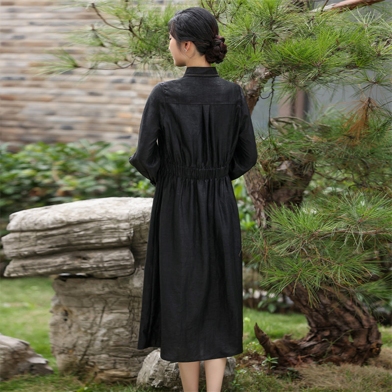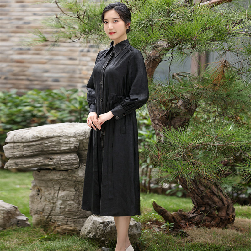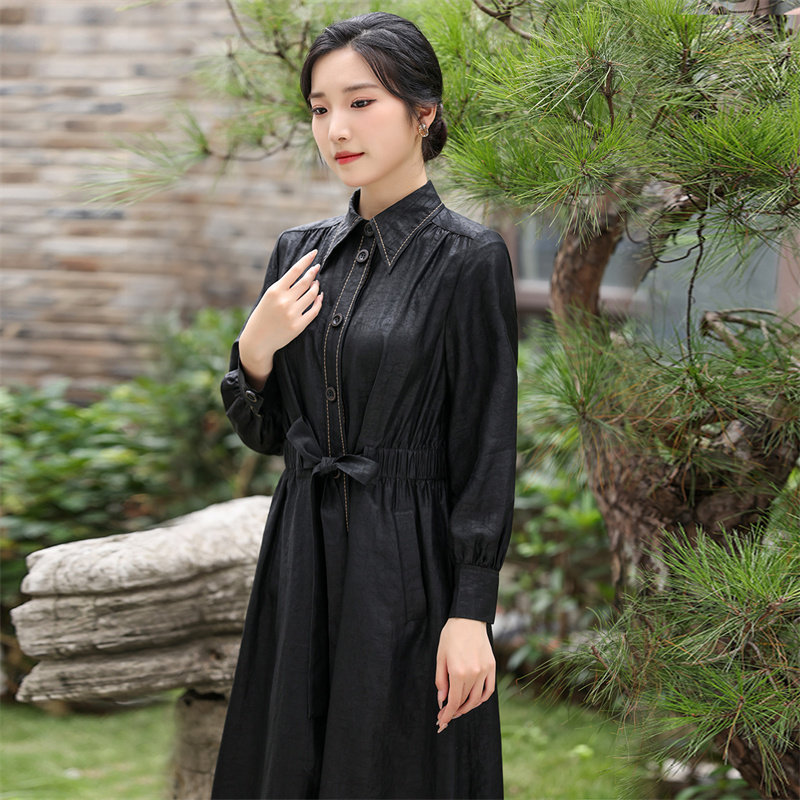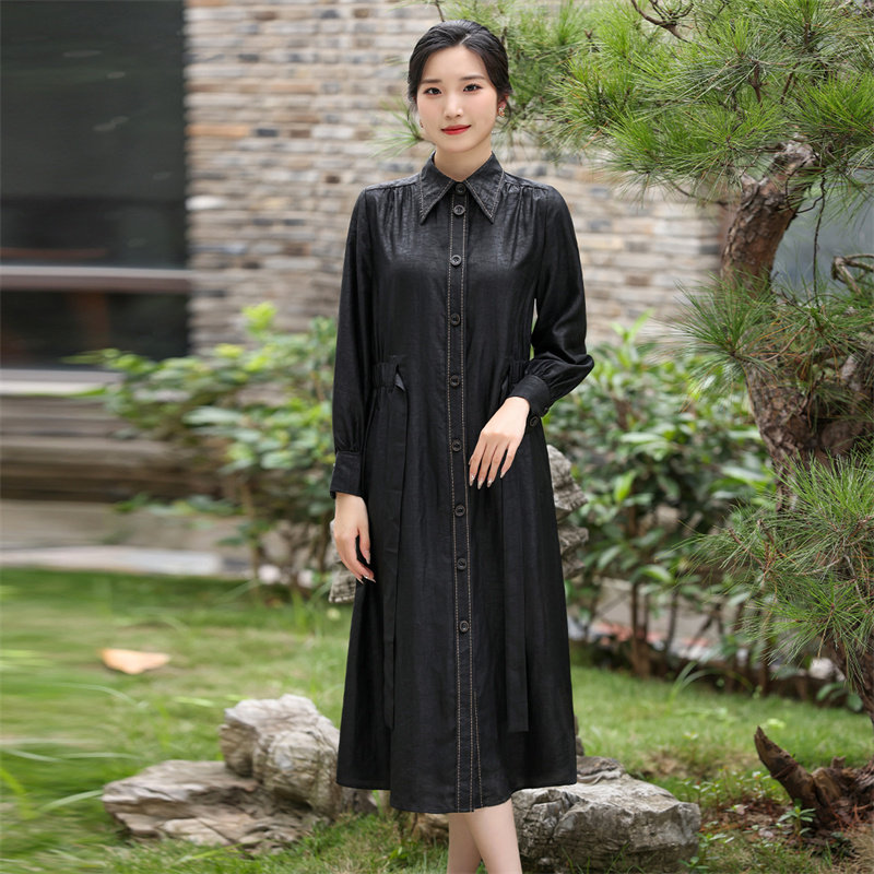 雀之恋风衣女款2024新款春秋复古龟裂纹香云纱中长款真丝外套风衣