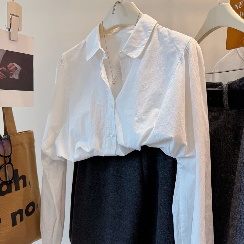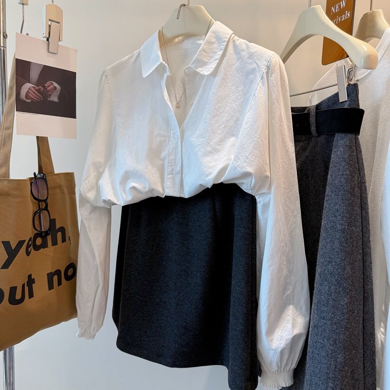 叠搭巨好看风琴袖打底白衬衫女