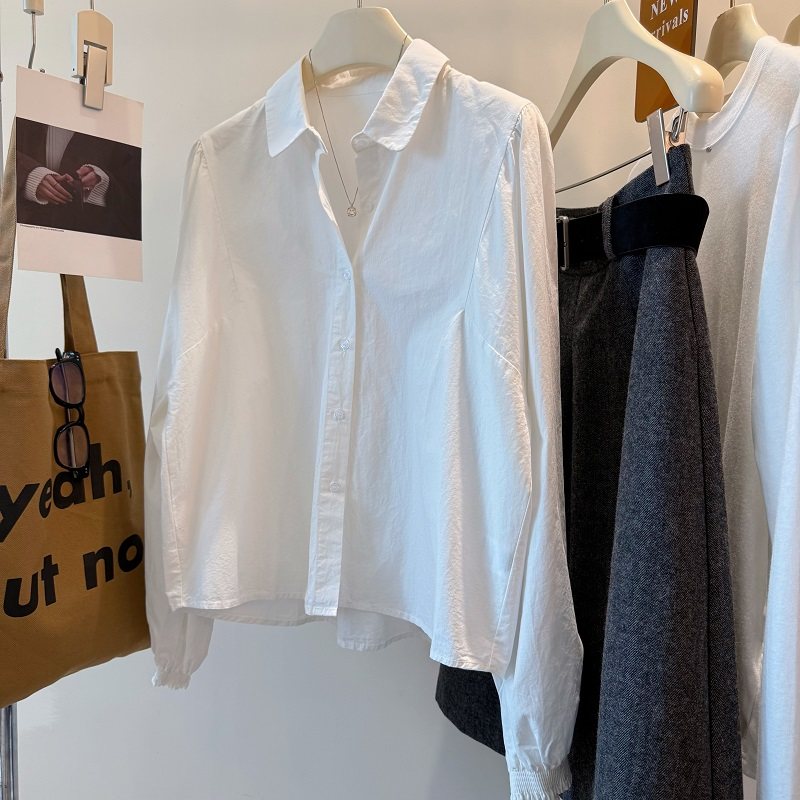 叠搭巨好看!风琴袖 娃娃领百搭气质纯色打底长袖白衬衫女衬衣