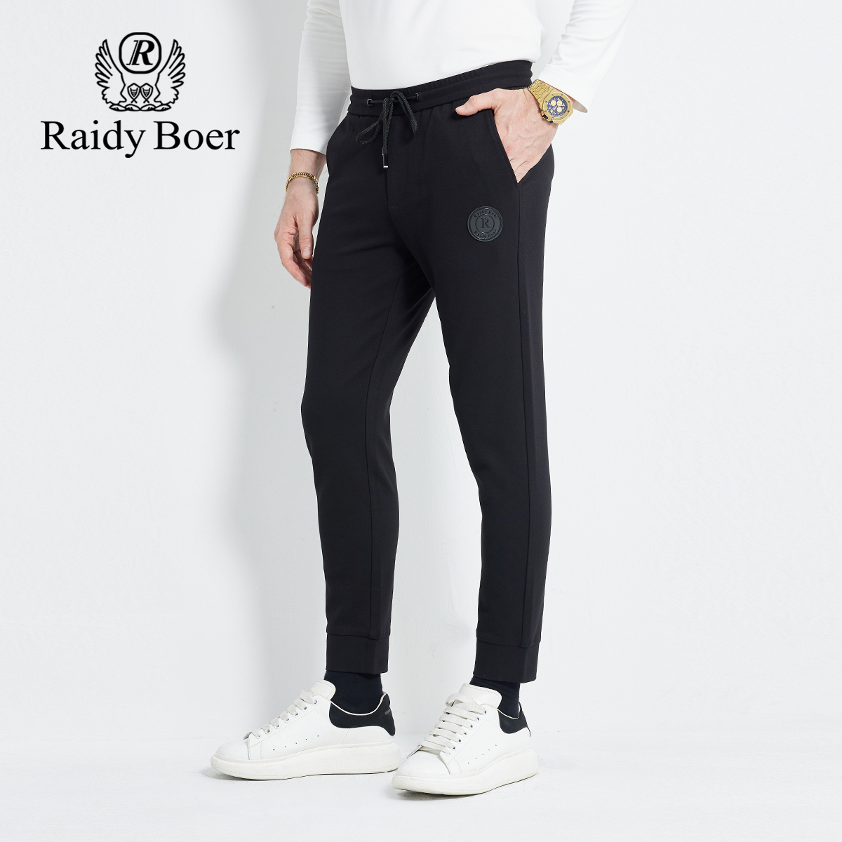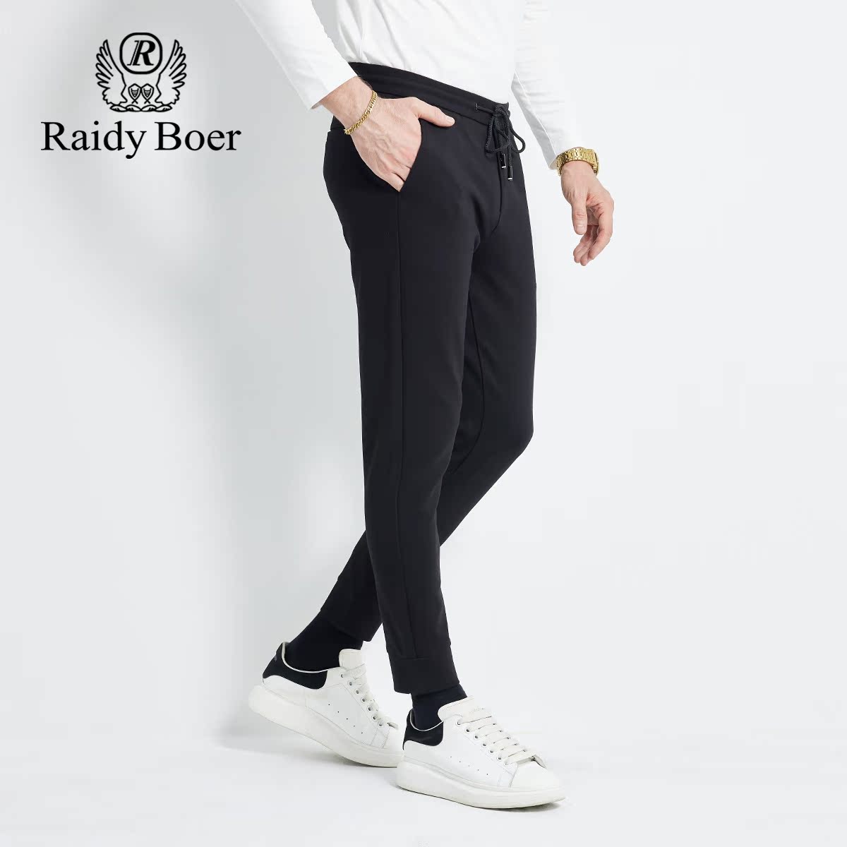 雷迪波尔男装休闲裤2023秋冬新款系带松紧修身运动小脚针织长裤男