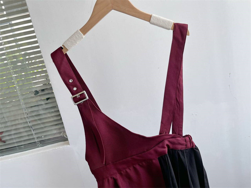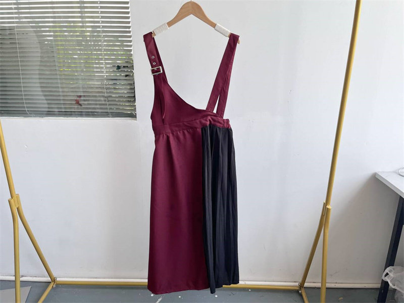 微瑕春秋新款百褶不规则背带连衣裙松紧腰休闲淑女减龄气质显瘦C7