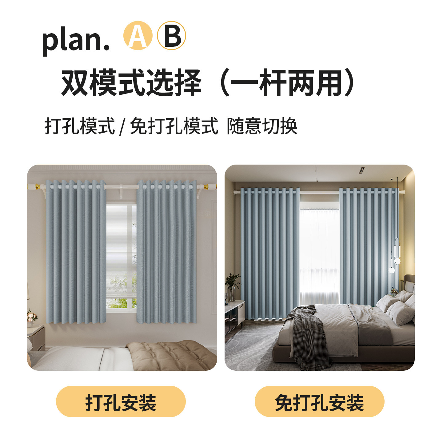 雪尼尔遮光窗帘免打孔安装送罗马杆整套卧室客厅飘窗阳台遮阳防晒