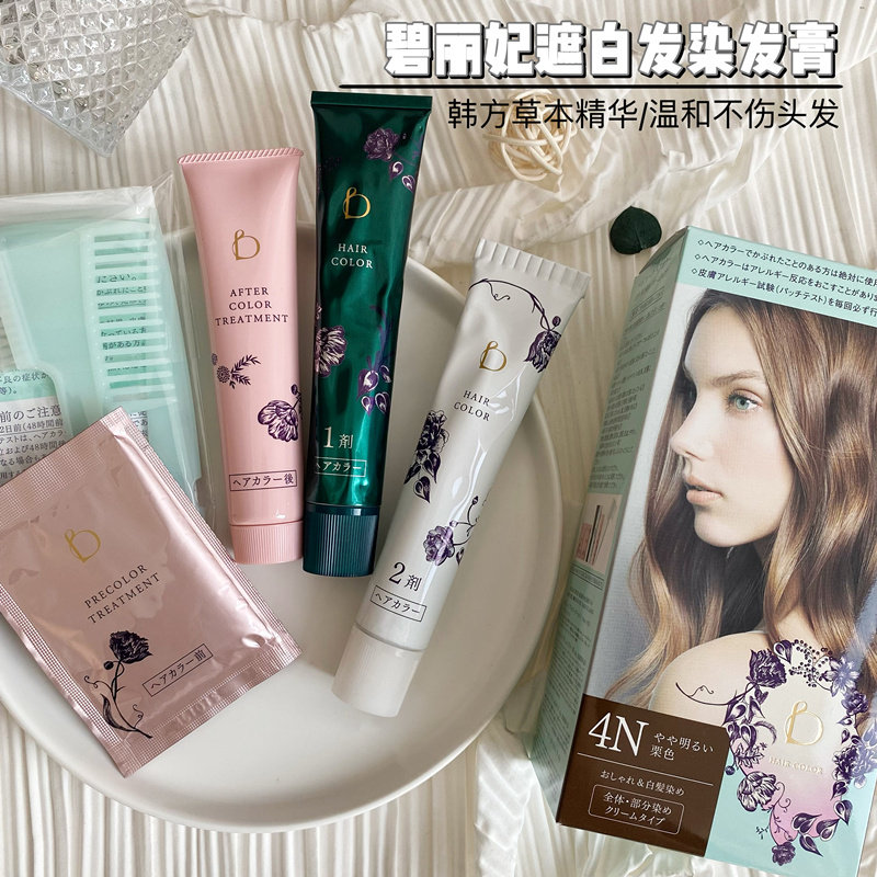 日本资生堂碧丽妃染发膏遮白发奶茶棕植物黑茶色温和染发剂染膏