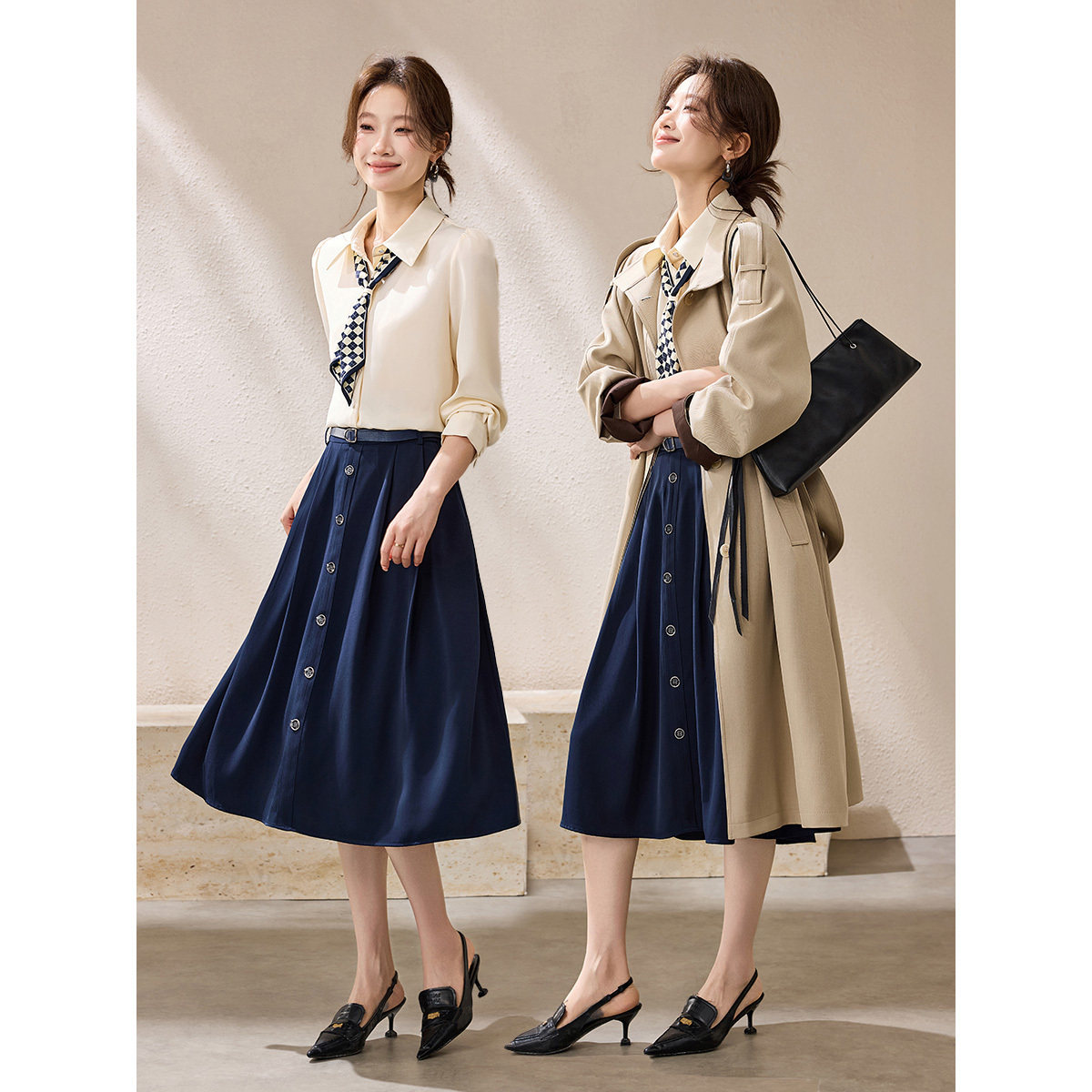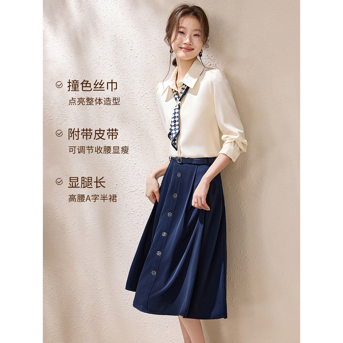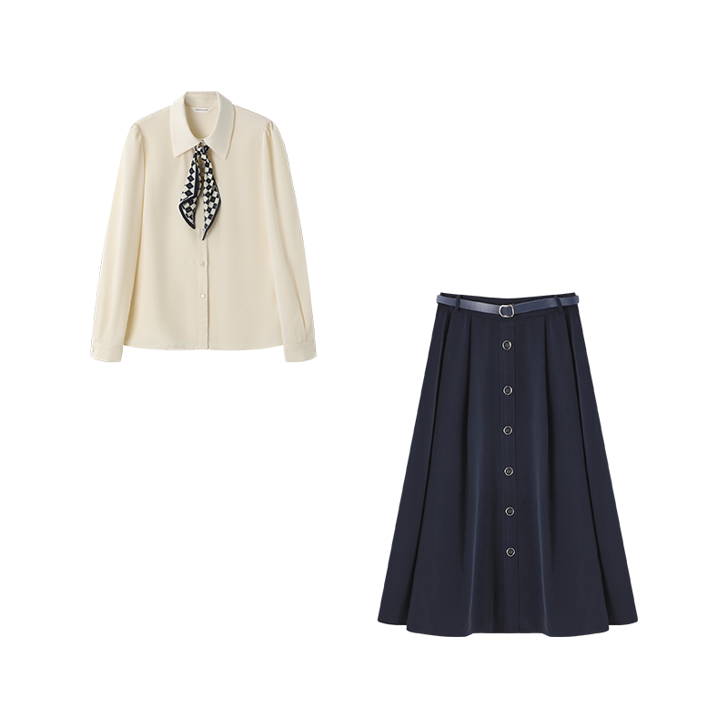 沫晗依美气质时尚套装2026年春季新款系带领衬衫两件套减龄套装女