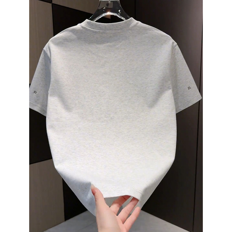 夏季新款简约小标刺绣休闲短袖T恤帅男士时尚百搭圆领半袖打底衫