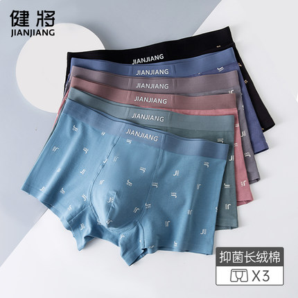 健将高档男士内裤纯棉透气抗菌平角男式青年大码四角短裤衩头秋冬