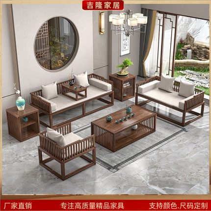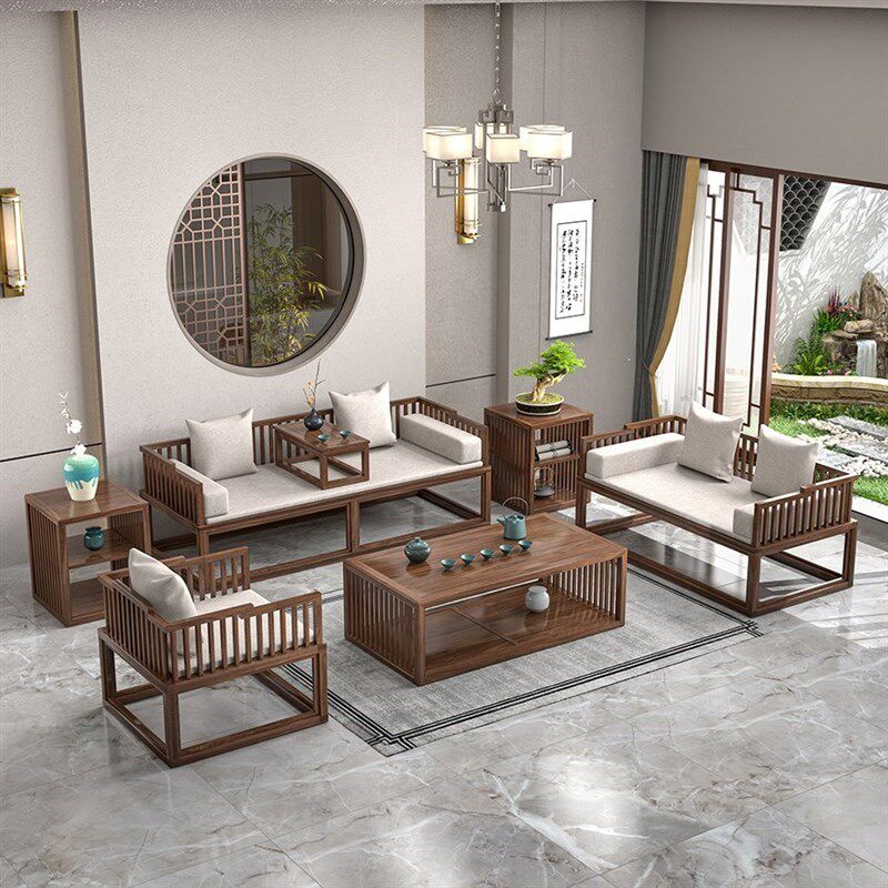 乌金木新中式推拉罗汉床实木伸缩榻茶桌椅客厅沙发组合卧榻睡塌床