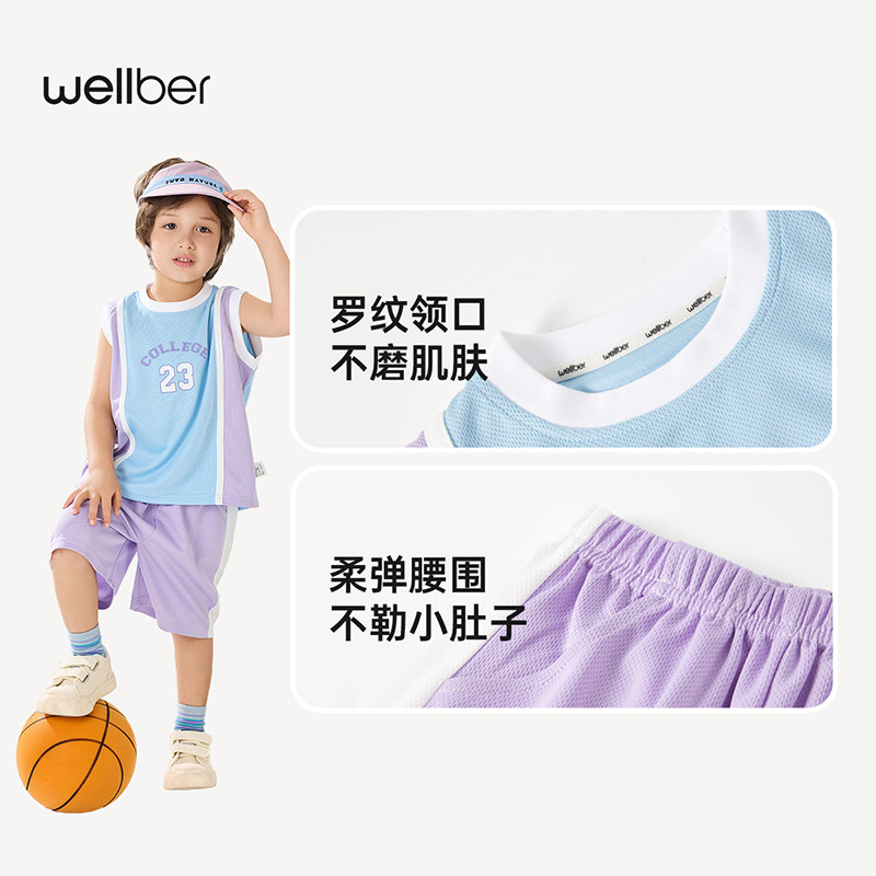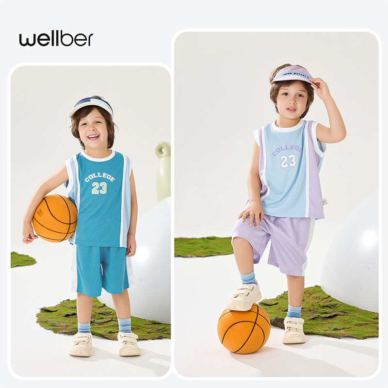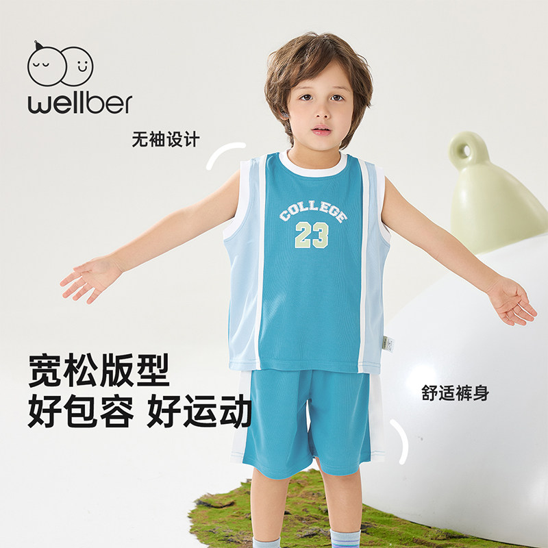 威尔贝鲁男童套装夏装宝宝背心套装儿童篮球服洋气时髦小童运动服